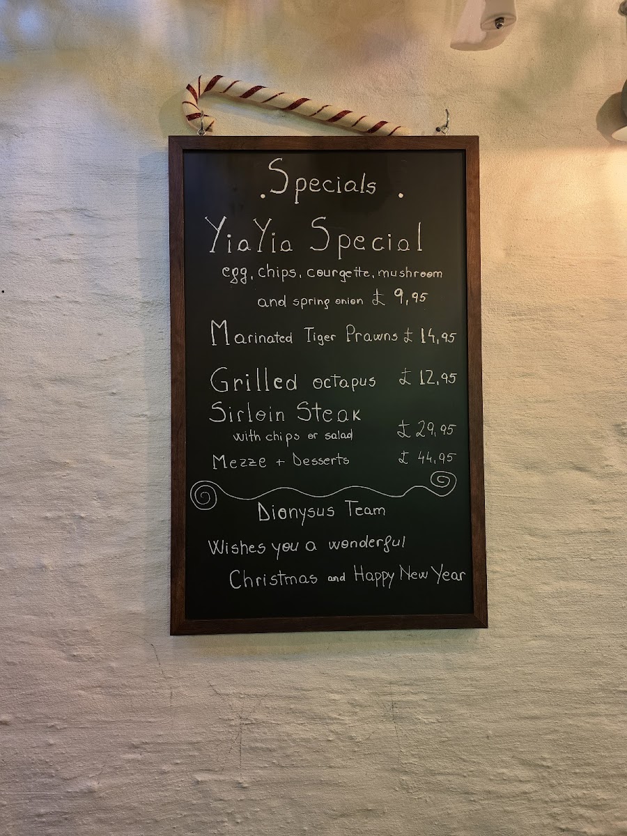 Dionysus Menu